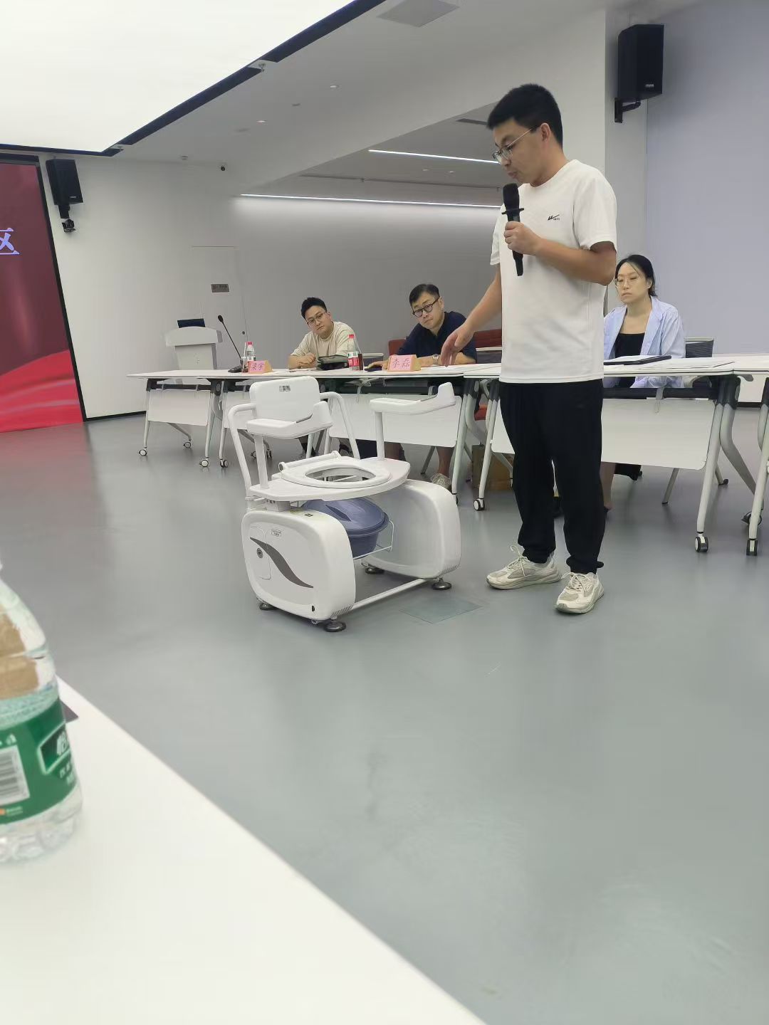 整整一天,对前来展示的床椅一体机、电动护理床、智能床垫、肌肉刺激器等适应老年人养老的器具,按具体细项,逐一打分评议。