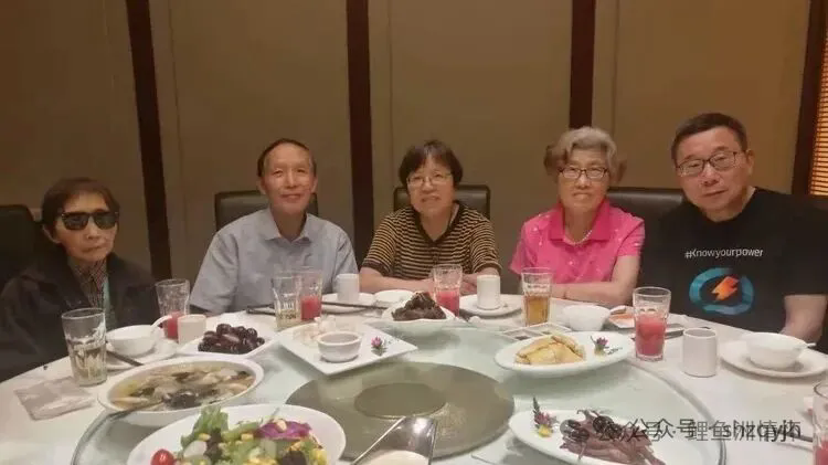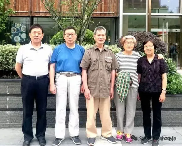 2018年,在上海定居的原江东学校朱龙宝(左2)老师,通过我下放兵团战友陈光荣找到我的电话。约了退休后在上海定居的钱蓉娟(右2)、徐伯蓉(右1)老师小聚。钱蓉娟爱人(原江东机床厂职工)参加。原学校校长姜志玉也在上海定居,那天有事未能参加,朱龙宝老师发了他们原来聚会的照片(下图)。