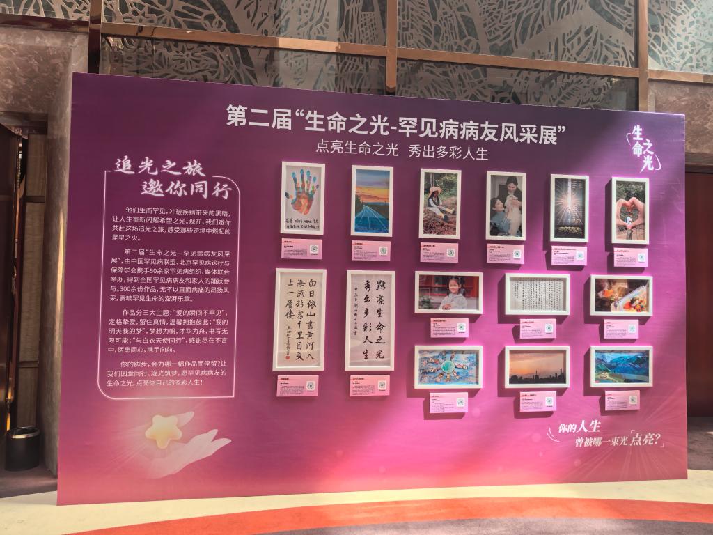 2025年中国罕见病大会现场病友照片墙。新华社记者 李恒 摄