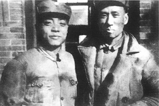 ◆全民族抗战初期,北方局书记刘少奇(右)、副书记杨尚昆在山西。