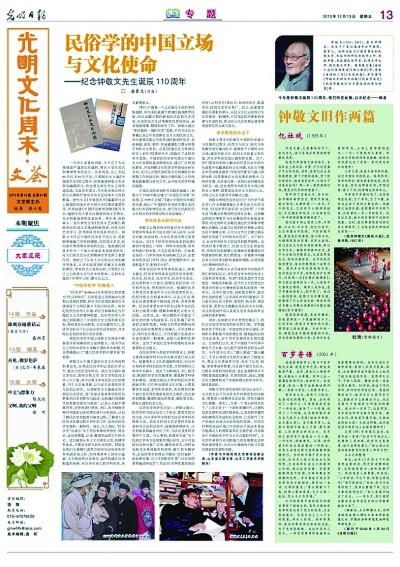 跨越半个世纪的时光里,钟敬文在《光明日报》发表文章49篇,涵盖民俗学、民间文艺学、教育等多个领域,约七万三千字。而钟敬文故去后,他的弟子们依然延续着与光明日报的情缘——