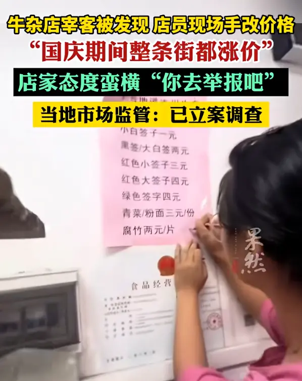 牛杂店宰客被发现,店员现场手改价格,市监局:罚款3500元