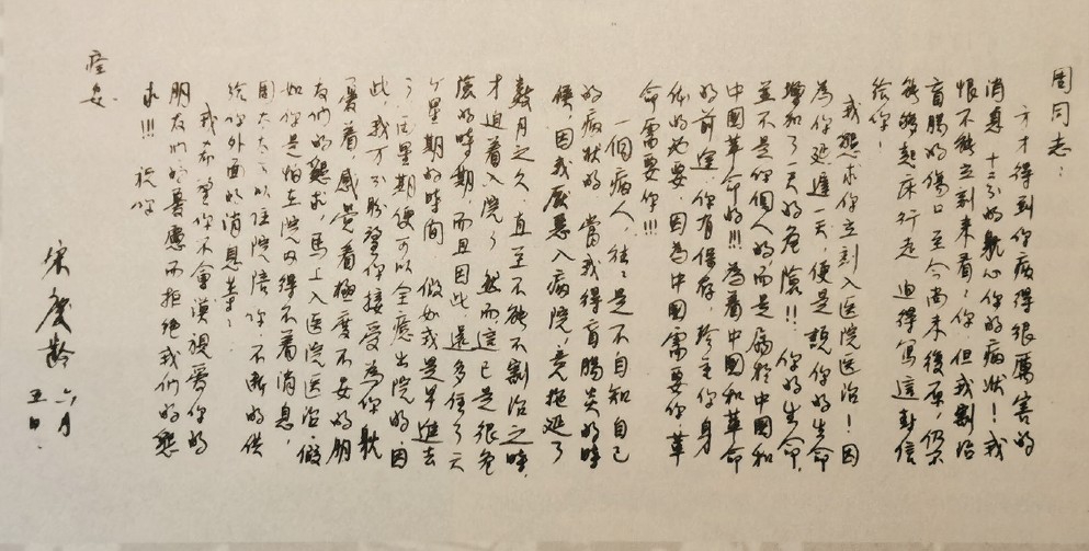 宋庆龄1956年重抄的1936年致鲁迅劝医信,原件藏上海鲁迅纪念馆。