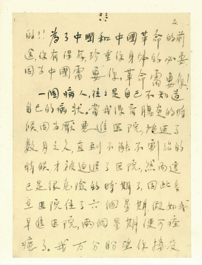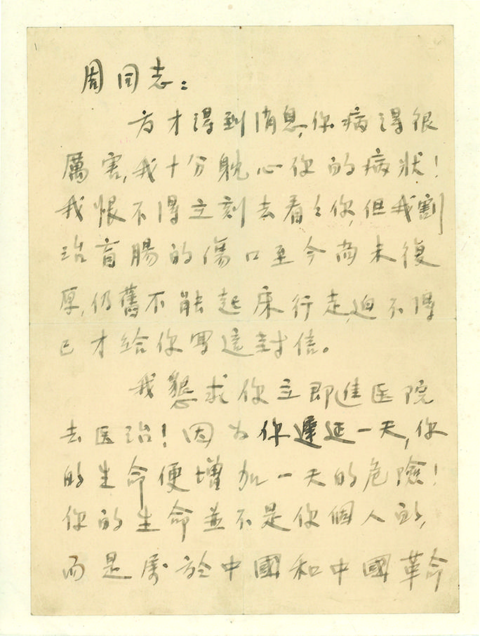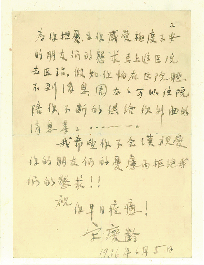 1936年6月5日宋庆龄致鲁迅劝医信,原件藏北京鲁迅博物馆。