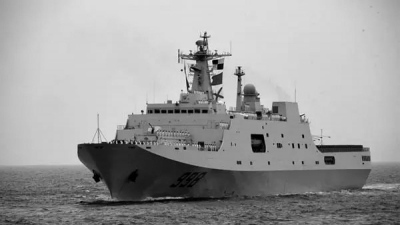 昆仑山舰是由我国第一艘自主研制的两栖船坞登陆舰,舷号998,2008年入列,排水量近2万吨。装备主、副炮和干扰弹发射装置,具备一定的防空能力。该舰设有坞舱、车辆库、机库等大型装载舱,可同时搭载多架直升机、数艘气垫艇以及数十辆两栖坦克。该舰最大航程上万海里,可在除极区以外的任何海区航行,可搭载登陆兵力实施远程立体投送。