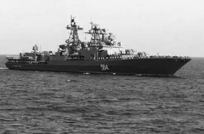无畏级导弹驱逐舰,舷号572,满载排水量7480吨,舰长163.5米,舰宽19.3米,最大航速30节,续航力5700海里,编制人数300多人,可搭载2架卡型舰载直升机。该舰配有反潜导弹、防空导弹,2座100毫米单管舰炮,4座30毫米六管舰炮,以及鱼雷、反潜火箭和火箭深弹发射装置,具有很强的反潜能力。该舰于上世纪80年代服役。