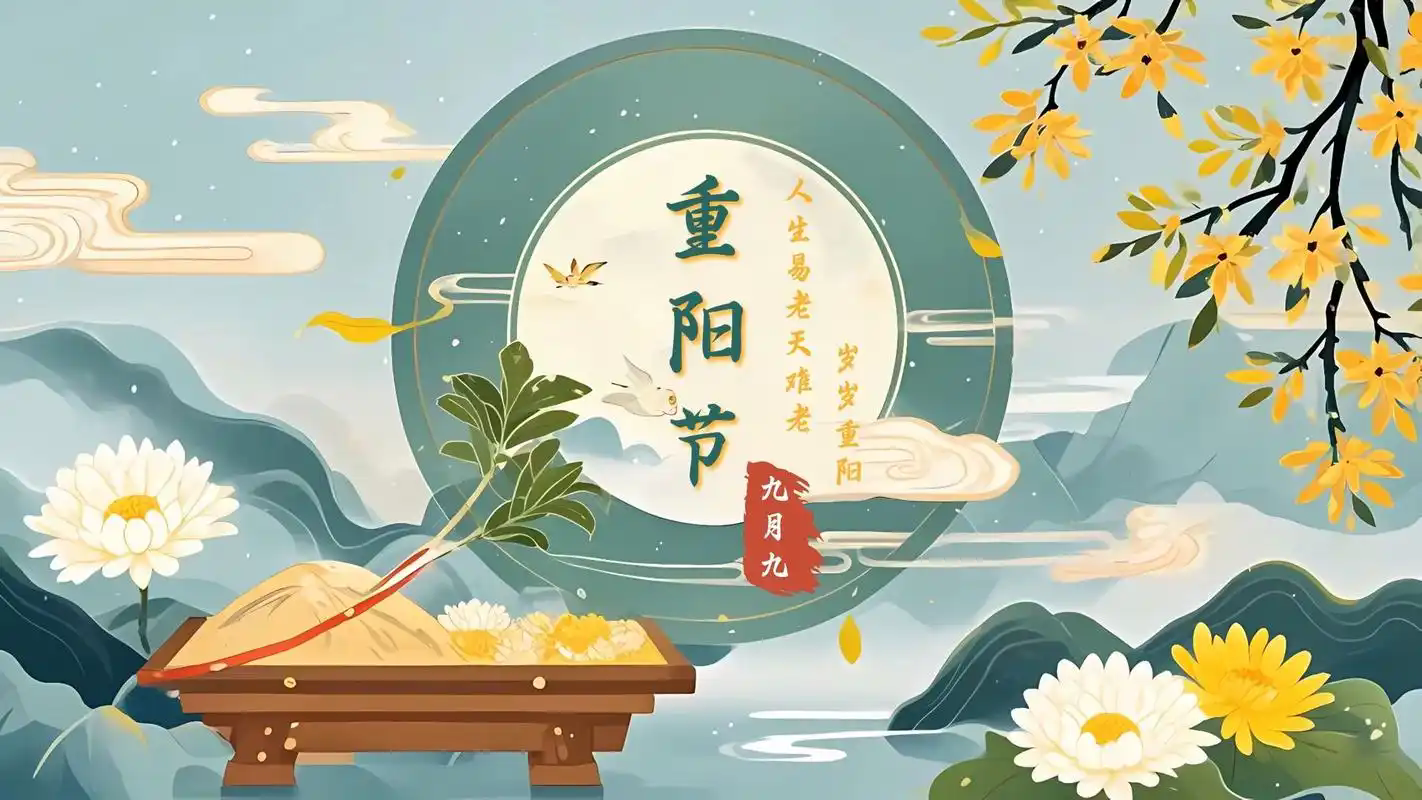 观花赏月,寻幽览胜,水绿山青菊金黄。