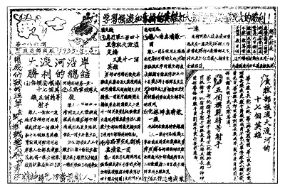 一切准备妥当,红4团点起火把,向前挺进,行进速度果然明显加快。走了不一会儿,对岸传过来号音,同时在涛声中隐约传来“啥子部队”的问话。红军司号员按照敌人的号谱予以回答,川籍战士和俘虏也吊起嗓子高声作答。对岸川军认定红4团是“自己人”,不再问话。于是,敌我两支部队“相安无事”地隔河并行,在大渡河两岸出现了两条火龙平行滚动的奇观,火光照亮了夜空,把波涛翻滚的大渡河映得通红。到了深夜12时左右,川军走不动了,熄灭火把宿营。