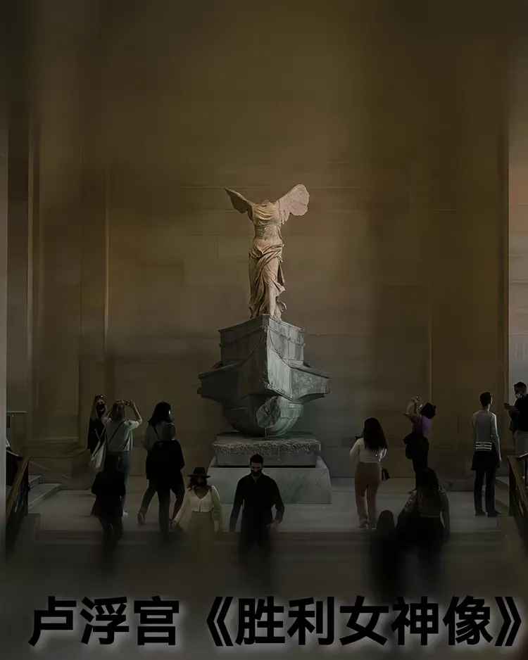 接着,我们来到了《胜利女神像》前。那尊雕像虽然失去了头部和双臂,但依然展现出一种不可阻挡的气势。