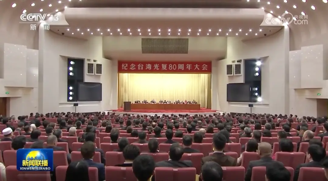 10月25日,纪念台湾光复80周年大会在京召开。中共中央政治局常委、全国政协主席王沪宁出席并讲话。