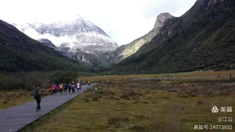 我们买的是单程电瓶车票,返回时就沿着冲古峡谷下来,一路上的景色依旧,溪流,栈道,草甸,丛林,清新空气,蓝天白云,皑皑雪山,郁郁森林,当短暂的夏天过去之后,亚丁迎来了它最令人心醉和神秘的秋天,“秋叶与雪峰相拥,碧水共长天一色”,一切都是那么令人心旷神怡,流连忘返。