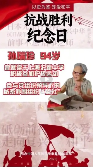凌晨,四周仍是漆黑一片。睡眼惺忪的她被家人一把拉起,喊着“快走,要来不及了”。八一三淞沪会战打响的这一天,仍是学生的孙瑞珍随父母从苏州举家投奔居住在上海租界的亲戚。她见证了这段历史,看到中国军人浴血奋战、拼死抵抗。