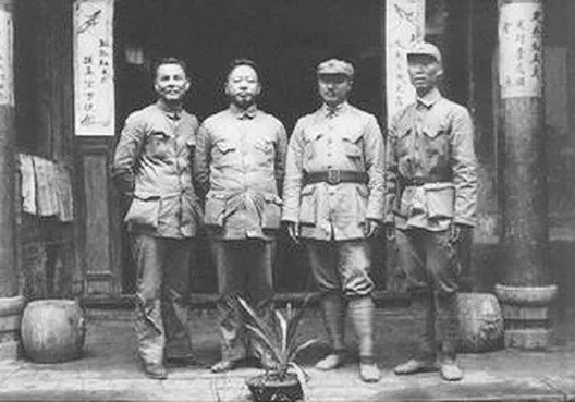 ◆1933年11月,第五次反“围剿”期间,叶剑英、杨尚昆、彭德怀、刘伯坚、张纯清、李克农、周恩来、滕代远、袁国平合影。