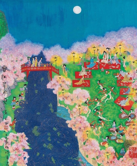 唐人柳宗元的《龙城录》也记载了唐明皇夜游广寒宫的轶事,说开元六年中秋之夜,申天师、鸿都客施展法术偕同李隆基飞入月中。在一片玉光中,有宫殿飘忽不定、寒气逼人,三人的衣袖都被寒气浸湿。宫门口上书“广寒清虚之府”六字,下有兵丁把守,拦住了三人。不得已,申天师只好携李隆基再次飞升,从空中俯视广寒宫。只见“玉城崔巍,但闻清香霭郁,视下若万里琉璃之田”,可见广寒宫占地面积之大。随后,李隆基又看见“仙人道士,乘云驾鹤,往来若游戏”,“素娥十余人,皆皓衣乘白鸾往来,舞笑于广陵大桂树之下”。也许,中秋之夜广寒宫中也有宴会,所以仙人道士,素娥宫女才往来不断。