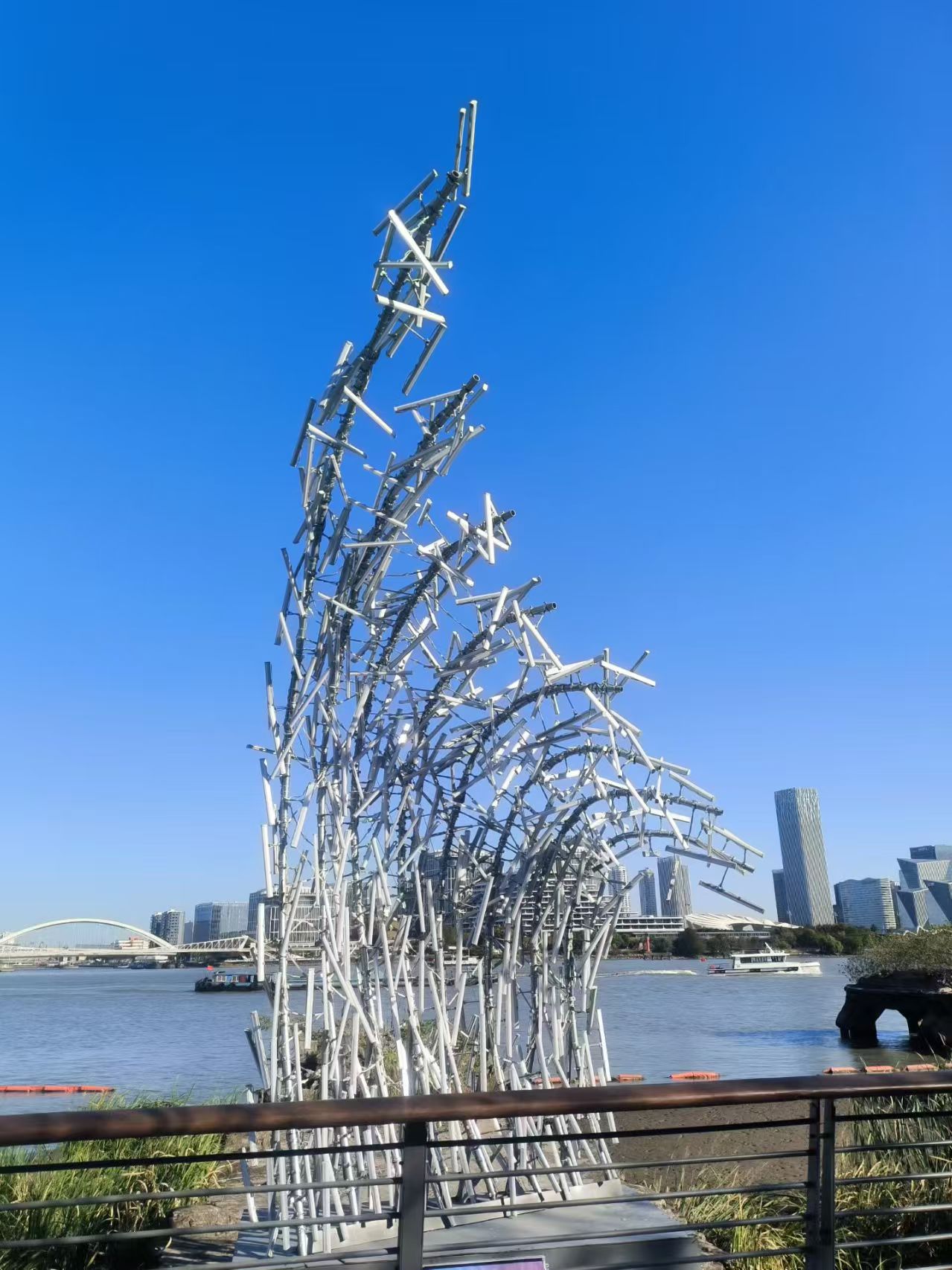 "徐汇西岸江滨"是我此行的全新目的地。初见便被其浓郁的现代化气息深深吸引。沿着江滨步道缓缓前行,江风拂面而来,带着江水的湿润与清爽,驱散了秋日的微热。