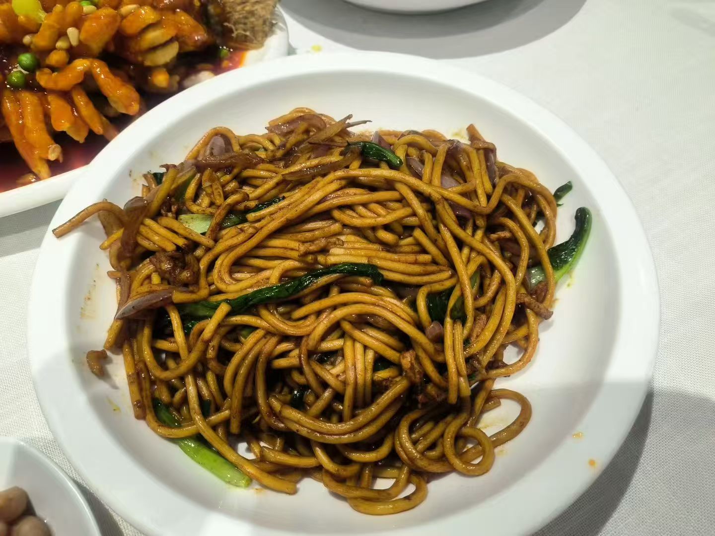 菜陆续上着,服务员端上一盘炒面,我忙说:我们没点啊。她笑笑说:这是我送你们的,为表达歉意。区区小事,却得来意想不到的欣慰。夫人乐了,忘了点它了,正好补了生日期盼的遗憾。