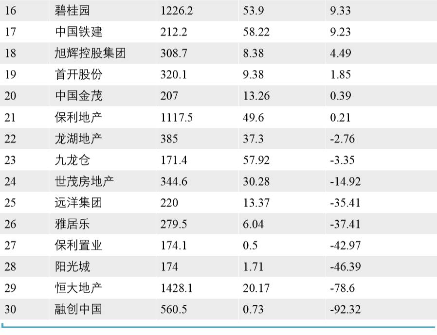 中国房地产报记者统计发现,即便如中国恒大、融创中国、阳光城、保利置业、远洋集团、雅居乐、世茂房地产、九龙仓这样的全国销售前30强房企,也出现销售额增长但净利润却同比下滑的尴尬局面。