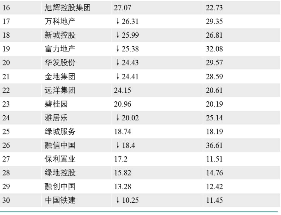 在中国房地产报发布的销售30强房企毛利率榜单中,15家房企毛利率较2015年底下降。其中,毛利率下降最明显的房企是融信中国。上半年融信中国销售毛利率为18.4%,而2015年底融信中国的销售毛利率则为36.61%。此外,万科地产、中国海外发展、万达商业、保利地产、招商蛇口、富力地产、金地集团等房企均出现毛利率下滑趋势。