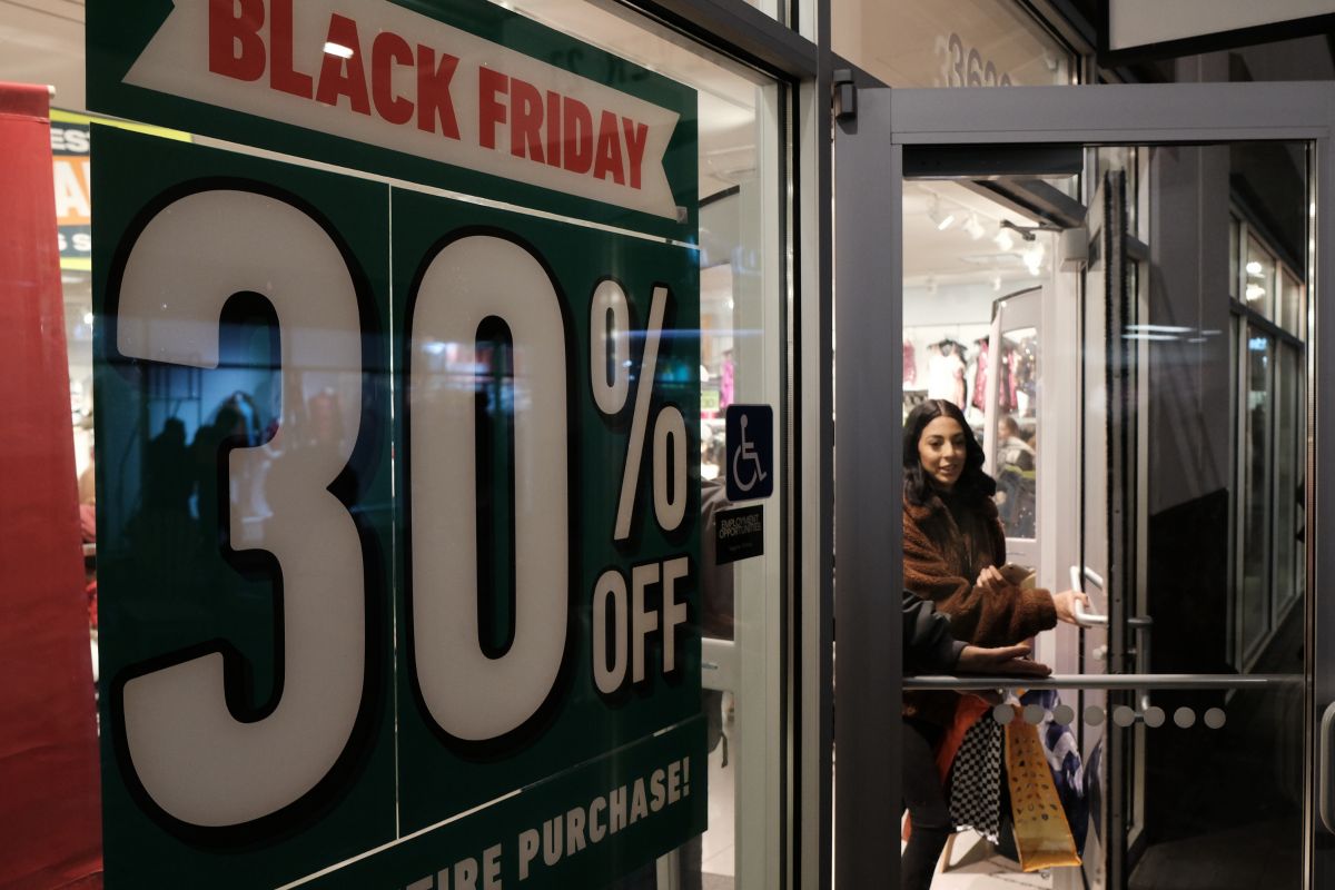 美国商店悬挂黑色星期五海报(新华社)