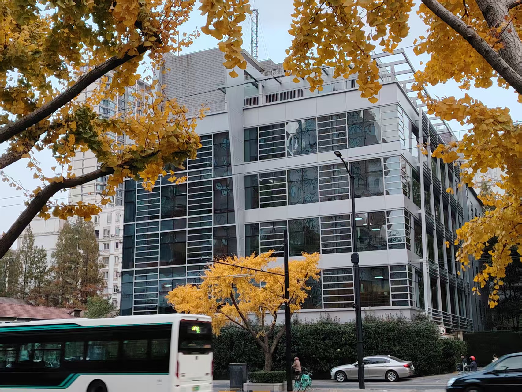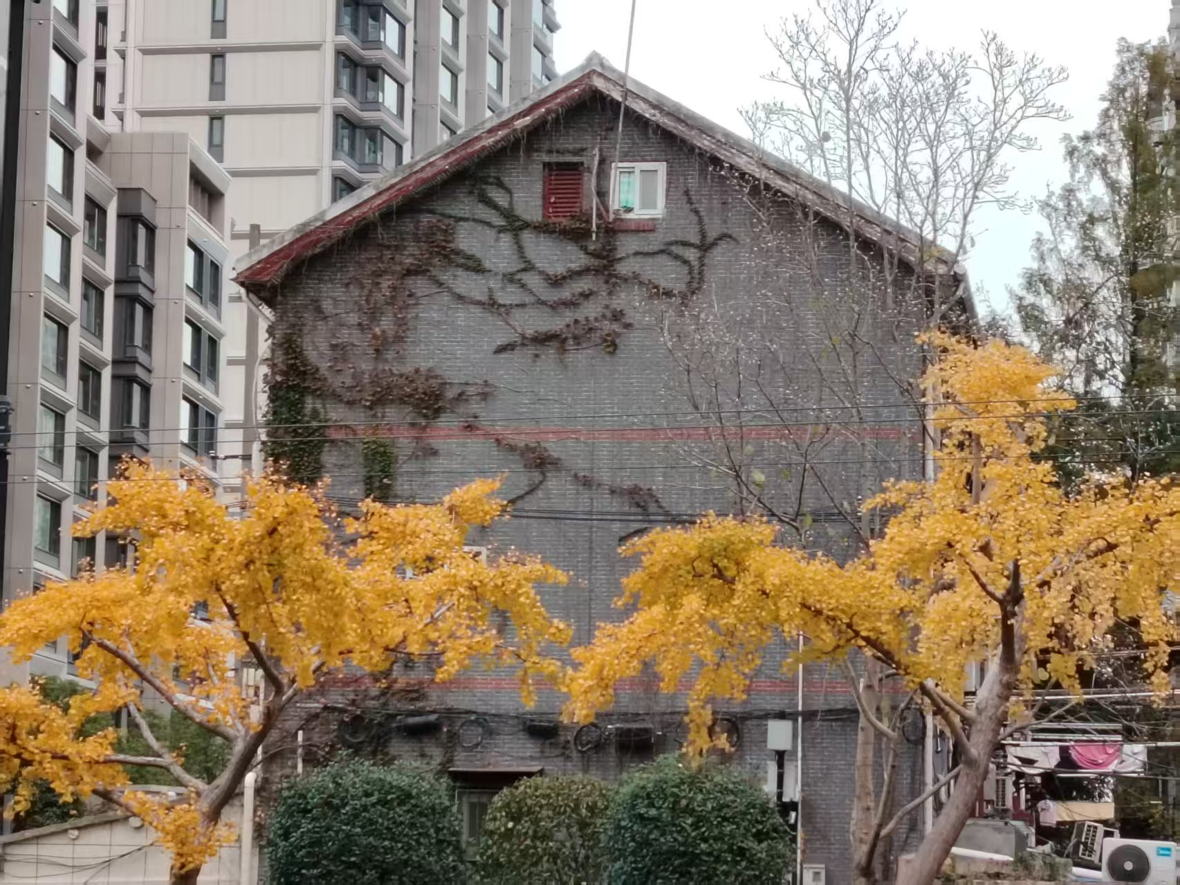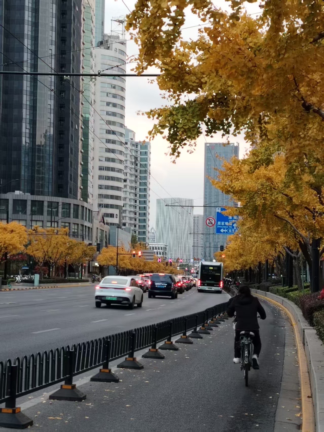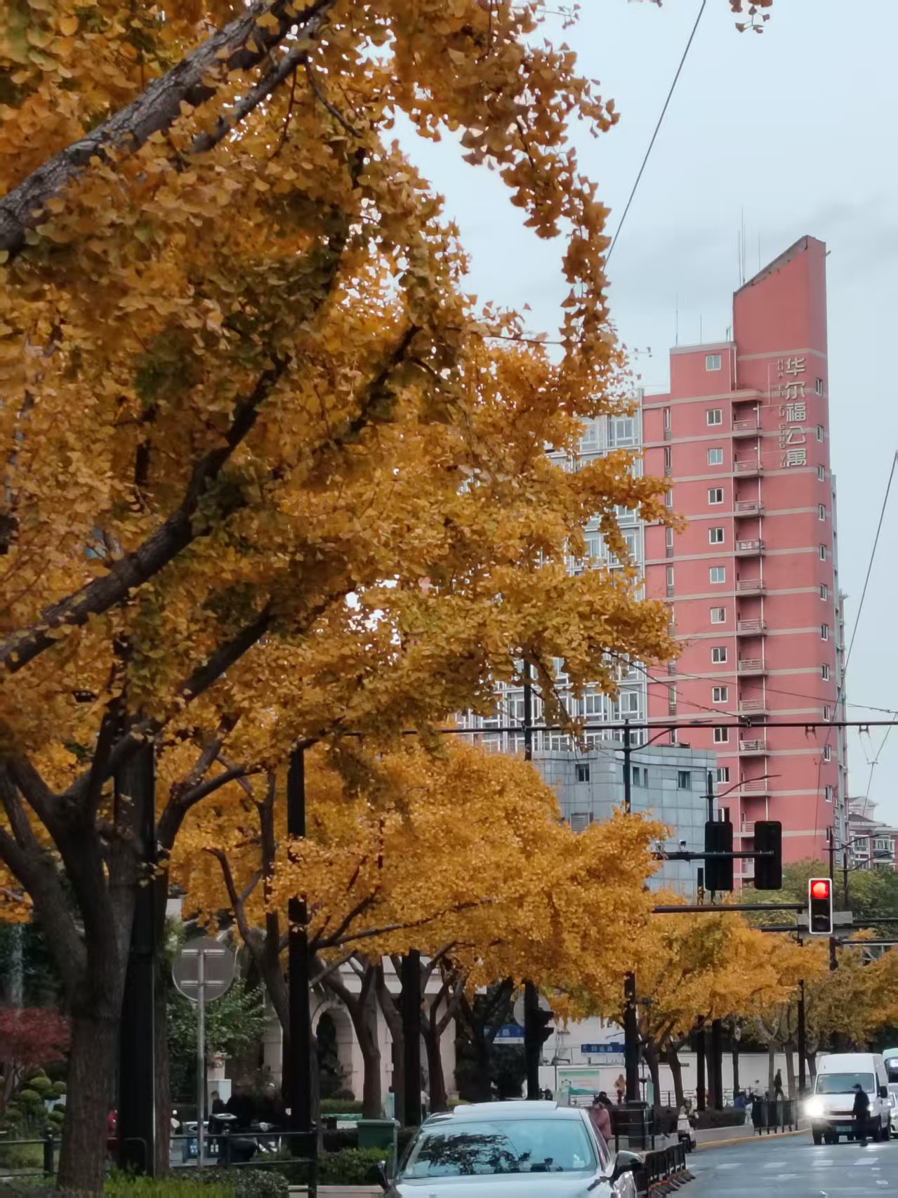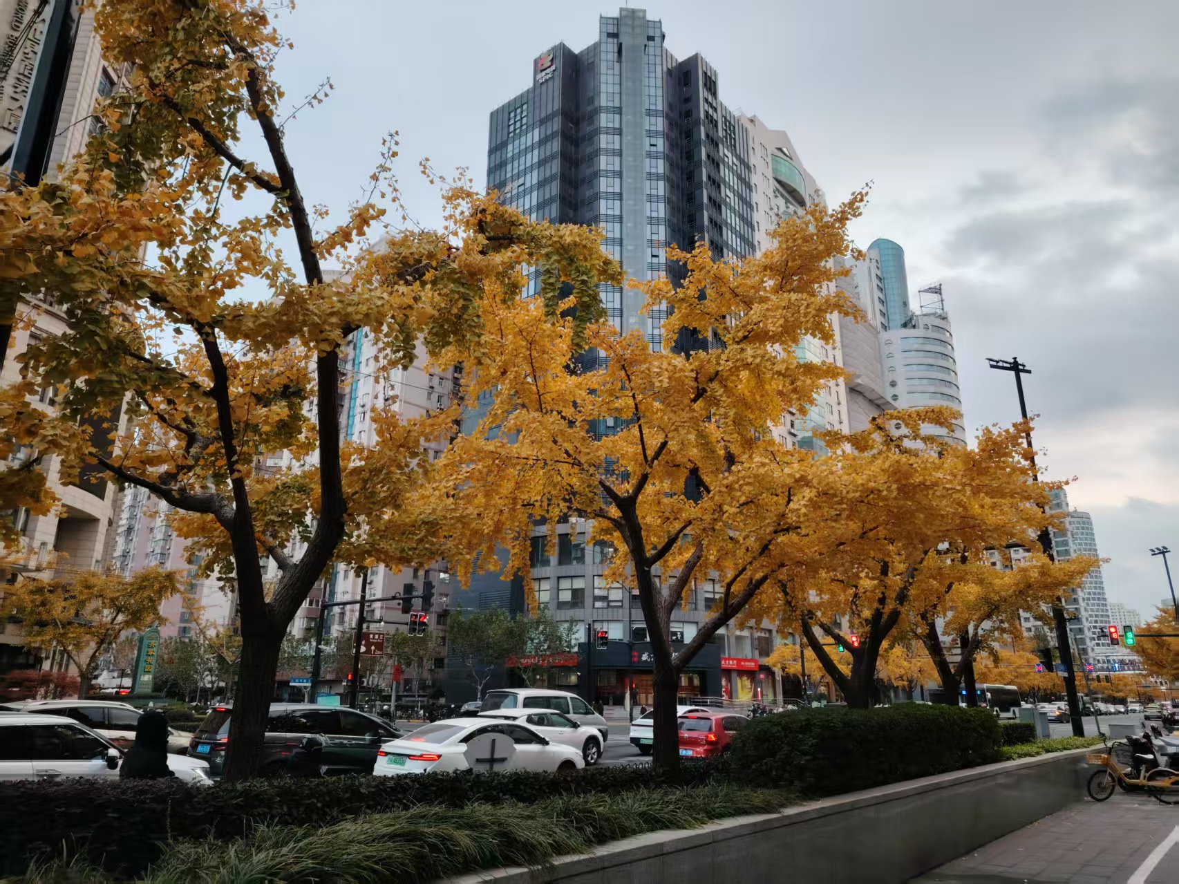 12月3日,上海市四平路临平北路两边的银杏树。日升摄