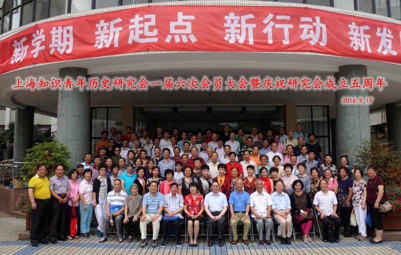2016年9月17日(星期六)在上海青年管理干部学院(地址:西江湾路574号)召开了上海市知识青年历史文化研究会一届六次会员大会,张刚主持会议,阮显忠作研究会工作报告,刘铭君作财务报告,杨剑龙宣读大会决议,金光耀作《知青学术研究现状》学术报告。下午,在青年会堂举行研究会五周年文艺庆典演出。