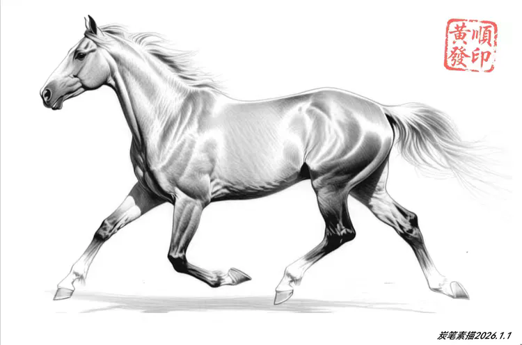 尾声:时光的馈赠,刚完成炭笔素描《奔马》