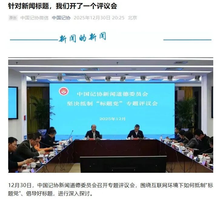 12月30日记协新闻道德委员会召开专题评议会,提及如何抵制“标题党 ”。