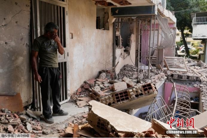 图为当地时间1月4日,在委内瑞拉卡蒂亚拉马尔,当地居民站在遭美军空袭后的家中。
