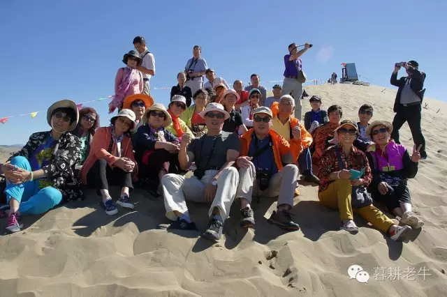 毕竟是六十多岁的人了,刺激似乎离我们远了点,我们都沿着沙丘上陡峭的铁梯攀登而上,直到软在了沙丘顶上,干脆来了个集体坐拍。