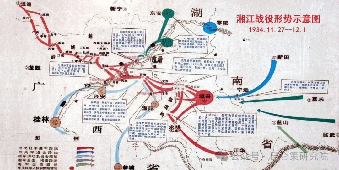 11月上旬,突破第三道封锁线后,毛主席立即又向中共临时中央提出:乘敌各路正在调动之际,组织力量寻机反击歼敌,变被动为主动,可以顺利突破湘江封锁线。又被李德、秦邦宪(博古)拒绝,失去了长征之初顺利冲破第四道封锁线的唯一战机。