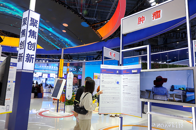 2025年11月9日,上海,第八届进博会医疗器械及医药保健展区吸引观众驻足观看。