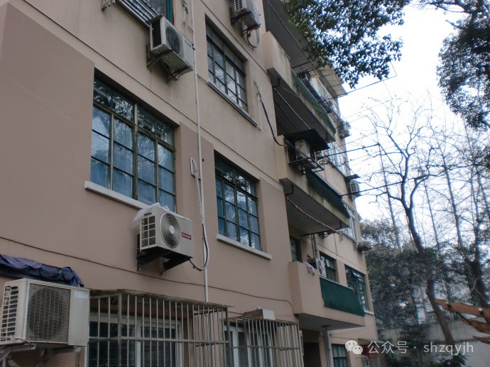 以上是我们小区的周边环境。现在就让我们走进湖南路100弄看看。湖南路100弄是原华东局机关宿舍。该宿舍院落不大,通道右手前后矗立着两幢一模一样的五层楼老公房。这两幢楼尽管也绿树掩映,在周围历史悠久,各具特色的旧式洋房的环抱中,却显得灰头土脸,毫无特色。据我母亲在日记中记载,这里当时的租金是0.37/平米,非常便宜。这反映了当时党和政府的执政风格:尽管政治地位特殊却在衣食住行方面尽量平民化。这种不搞特殊化也许只是外表,每套住房的内部格局与当时其他老公房还是有区别的。这里是一梯两户,双号格局稍大,四房大小两卫一厨一厅外加一个阳台,不到100平米的居住面积;单号三房一卫一厨一厅一阳台,面积稍小。从小区内的住户来看,这里也还有等级观念。据我所知,这里居住的干部行政级别最高的为8级,(原市委宣传部副部长陈其五除外,他是文革中从康平路100弄被赶出后暂住到这个小区的。)级别最高的住三楼,其次是二、四楼,依次类推。当时有些级别较低的年轻干部住一楼或五楼,有的甚至是两家住一套。