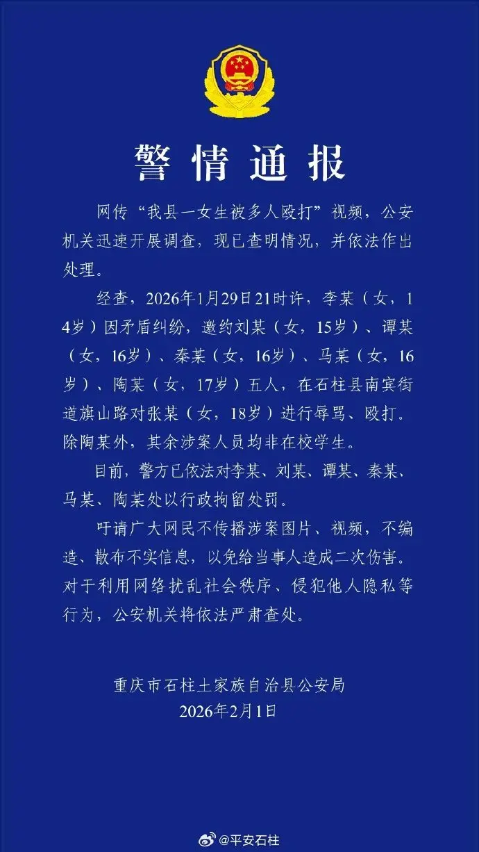 18岁女生遭6名未成年当街辱骂殴打,警方通报