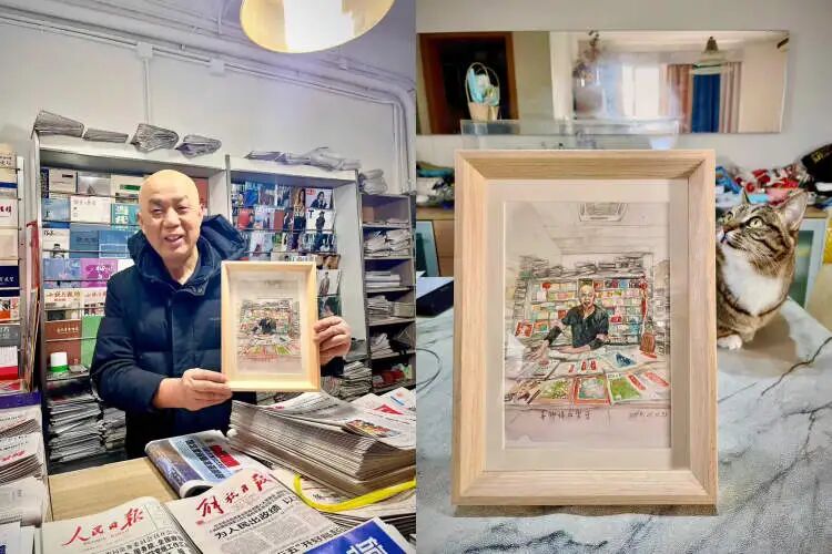 1月9日,建筑师老任前往乍浦报刊门市部探望了姜俊师傅,把去年10月底去吴淞路报刊门市部创作的人物速写原画送给了姜师傅,并祝乔迁后的报刊门市部生意红火、姜师傅身体健康。