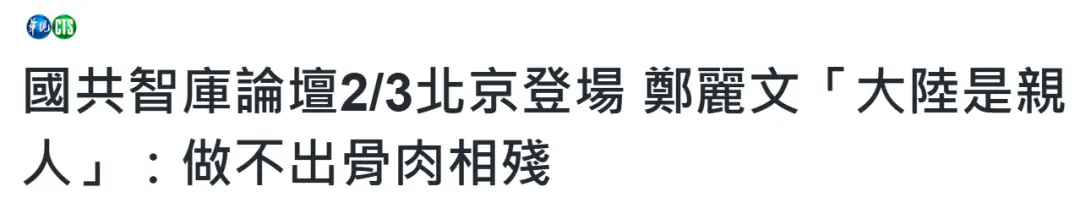 “国共两党智库论坛”即将于2月3日在北京举行。中国国民党主席郑丽文日前在中常会上表示,希望透过论坛搭建两岸沟通桥梁,并强调“大陆是亲人,绝对不会做出骨肉相残的事情”。她指出,各界都不愿看到两岸走向对立与冲突,期待通过不同选择推动两岸关系融冰与和解。有评论认为,此番表态有助于拓宽国民党的两岸论述空间,对国民党未来选举及促进两岸关系破冰具有积极意义。