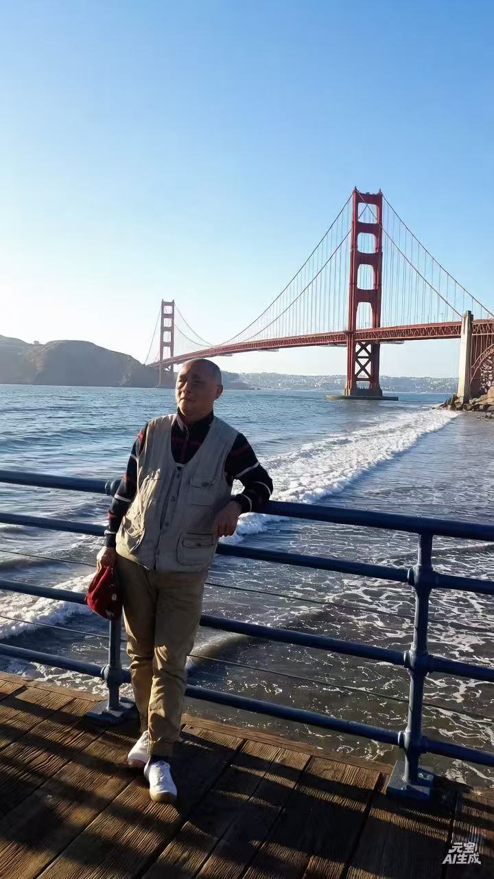光开始收敛。金色褪去,大桥恢复了它“国际橘 ”的本来面目,但那沉稳的色彩里,仿佛沉淀下了刚才那场金色幻梦的全部重量,显得更加深邃,不可动摇。他长长地,缓缓地吁出一口气。胸膛里那片堵着的什么,忽然就通了,化了,变成一种温热的,沉甸甸的清明。他终于来到了金山大桥。他也终于明白,他永远无需,也永远不能,抵达那个故事尽头虚无的“新金山”。因为真正的金山,就在脚下,就在眼前。