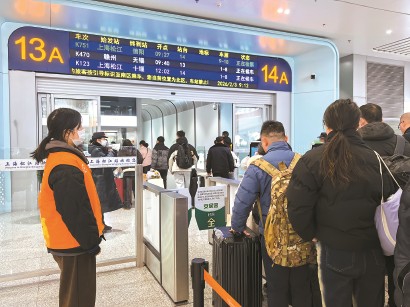 2026年铁路春运进入第二天,长三角铁路枢纽上海松江站迎来节前返乡客流小高峰。记者昨天从上海松江站获悉,为应对大客流、提升通行效率,车站已正式启用地铁免安检通道,实现与轨交9号线的“无缝换乘”。