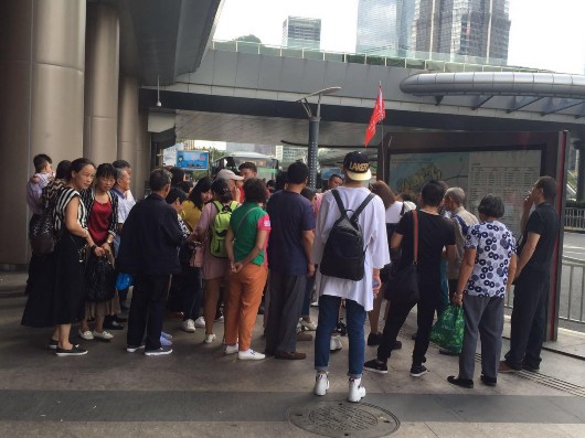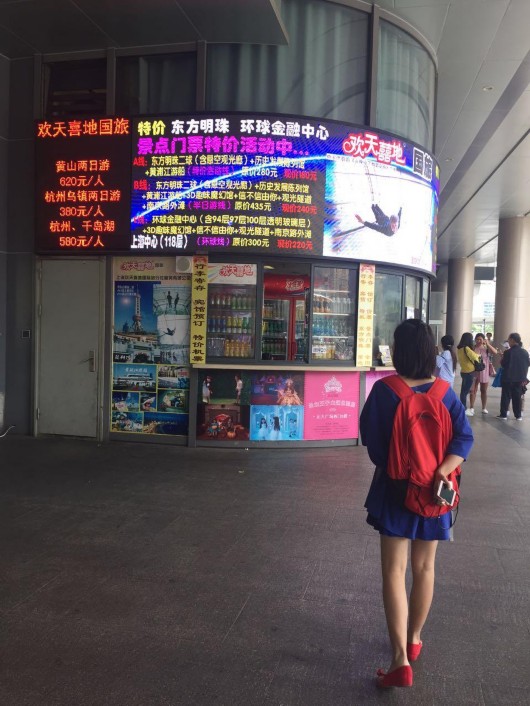 陆家嘴地铁口的旅行社位置相当醒目,吸引了游客的目光