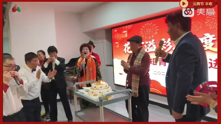 更添暖意的是,今夜恰逢本次活动协办方——上海市属农场知青联谊总会李凤吾会长的生日。全场在主持人的提议下,在《生日快乐》的音乐声中,一个精心准备的特制生日蛋糕缓缓推上舞台,为这场元宵团圆宴,平添了一份意外的温情与惊喜。烛光点点,映着满场真诚的笑脸,大家不约而同地起身,齐声唱响生日歌,歌声真挚而热烈,饱含着知青兄弟间最朴素的祝福。李凤吾会长在掌声与祝福中许下心愿,这一刻,元宵的团圆与生日的喜悦相融,知青情谊在温暖的仪式中愈发醇厚。