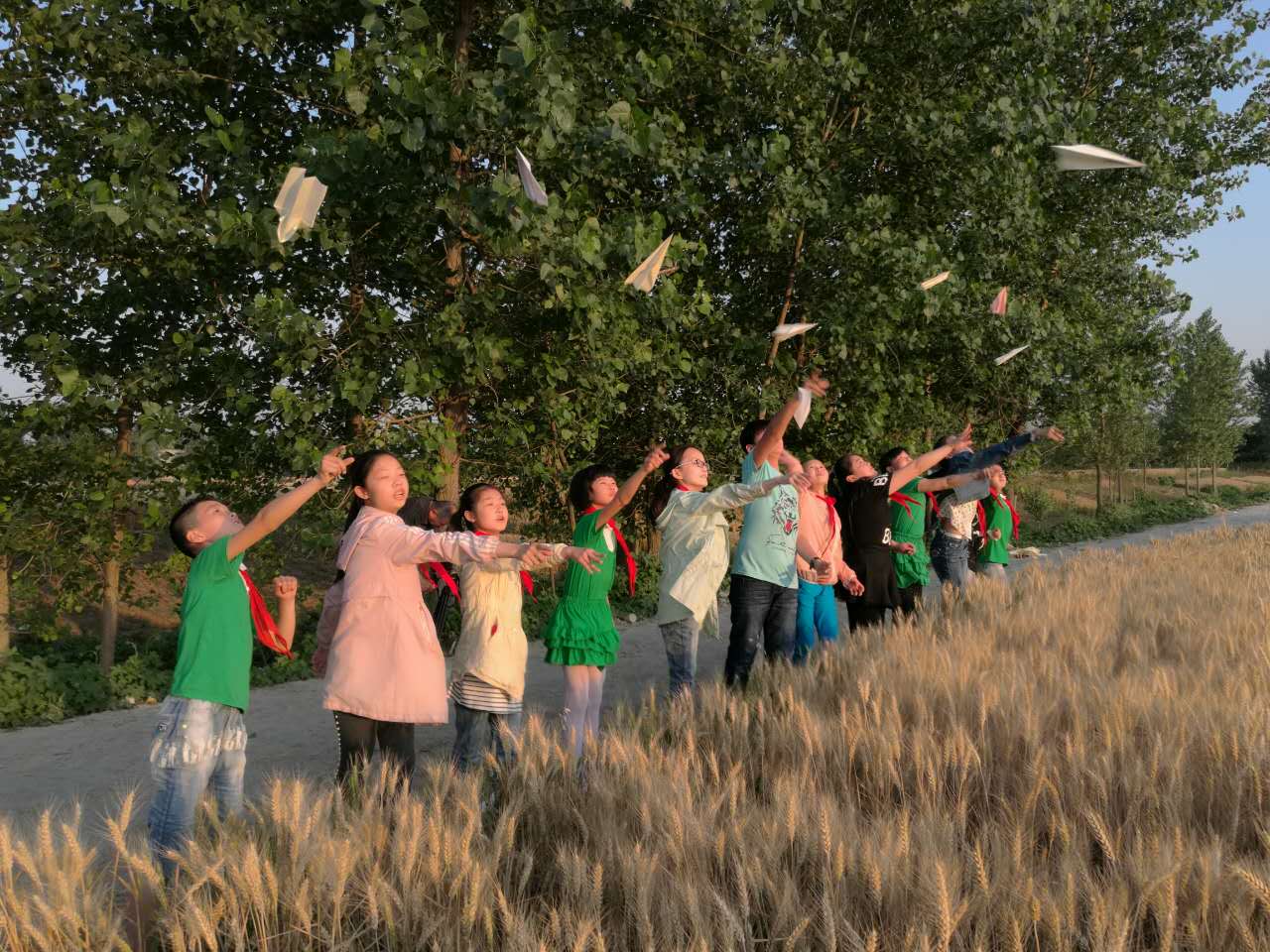 我还构思要拍这样一组镜头:金黄的麦田边,血色的夕阳下,一群留守儿童手持自叠的纸飞机,边喊着陈老师您走好,边将飞机抛向天空……。万老师听后很赞赏:“那什么时候组织学生拍呢?”我查了天气预报:今晴明多云后阴雨,争取今天拍完!因为这个镜头太重要,我们丢不起!