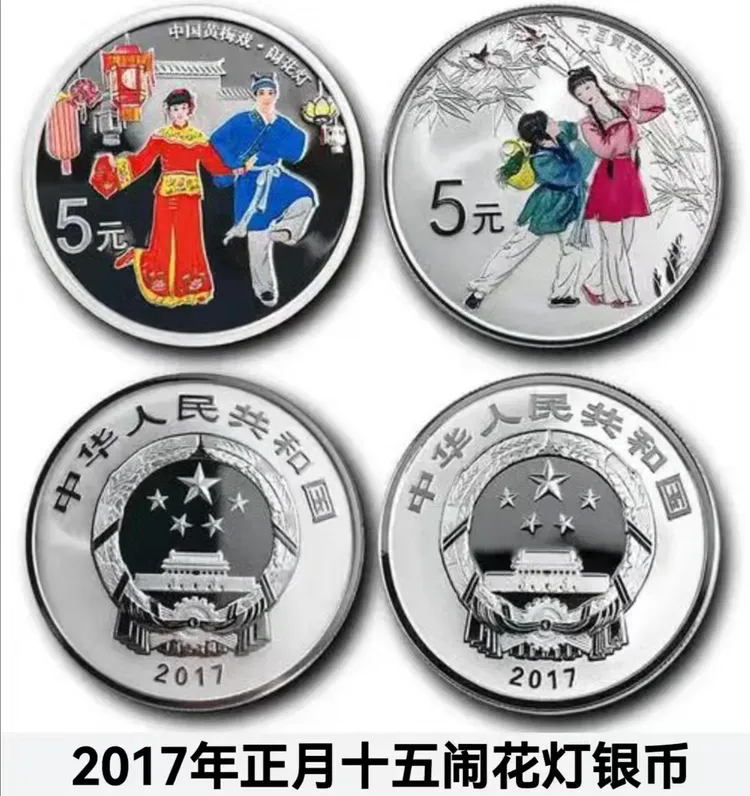 我也喜欢听黄梅戏,听着戏里的上元故事,这枚银币上的图案,似乎都能听见安徽乡村正月十五闹元宵的情景。