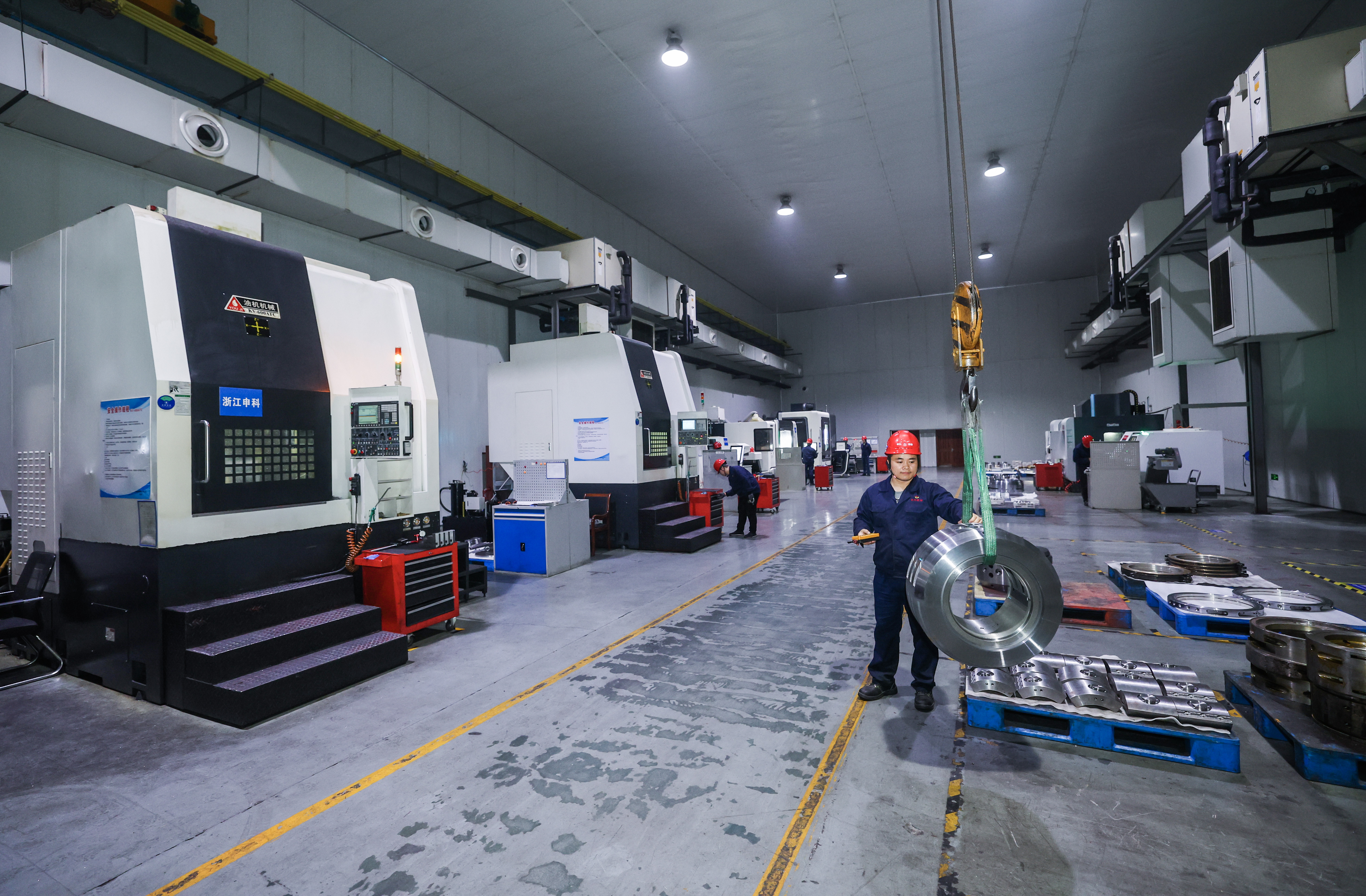 2026年1月20日,在浙江省诸暨市璜山镇的申科滑动轴承股份有限公司轴承智能车间内,自动化设备在加工轴承。(新华社)