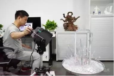 这是北京泊渊鑫利科技有限公司项目总监徐源正在对今年中心花坛花篮的小样进行一次整体3D扫描。