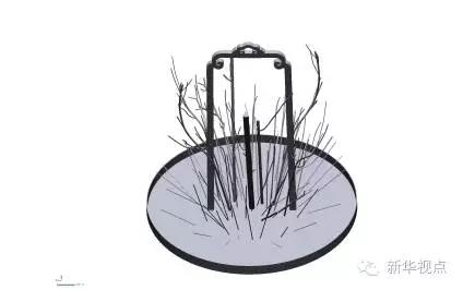 接下来是逆向造型。这是相较于正向造型来说的。如果正向造型,那就是画好花篮的设计图,然后由工厂根据设计图制作各个部件,最后组装。这其中的问题是设计和实物之间的误差较难控制。逆向造型则是先制作一个花篮小样,通过3D扫描得到数据,在专业软件上对数据进行处理,得到3D模型,然后等比例放大,得到花篮中各个花杆的相关数据,再进行制作安装。这种逆向还原设计原貌的做法,更有利于最终效果的逼真、自然。下图就是逆向造型后得到的效果图——