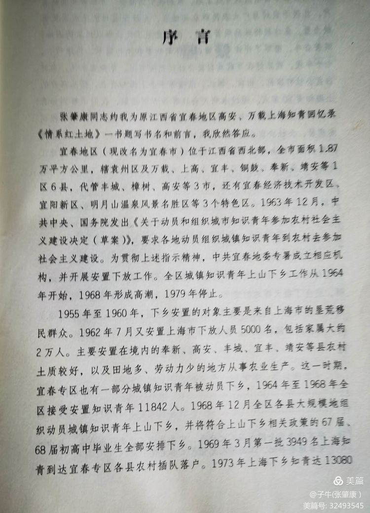 我请了万载知青插队时任县领导,后任中共高安县委书记,宜春地委书记,全国八届人大代表,中共第十五次党代表会代表,江西省人大宜春工委主任:邓布仁老领导为《情系红土地》书写书名作“序言”。