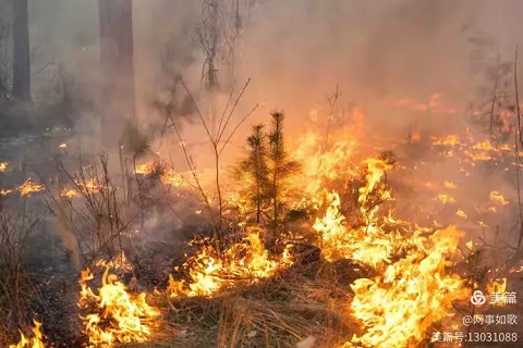 此时,出现我们眼前的是,天空被厚重的烟尘彻底遮蔽,空气里弥漫着焦糊味,让人喘不过气。一抬头,便看见翻涌的烟幕如同巨兽吐出的气息,在林间不断升腾、卷动,将原本青翠的山林熏得晦暗无光,让人感到恐怖的是,这条烟幕连同火舌正在快速地向四周蔓延。