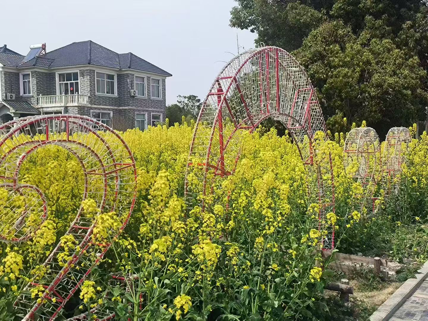 木栈道旁,乌篷船轻系岸边,粉墙黛瓦倒映在清凌凌的水面上,连风里都裹着泥土与菜花的清香。我们在绘着“东罗”二字的蓝墙下留影,在田埂间漫步,看炊烟袅袅,听鸡犬相闻,一派“暧暧远人村,依依墟里烟”的田园诗意。