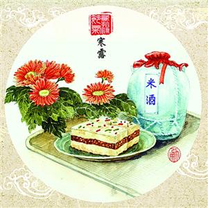 节气寒露前后正值重阳节,所以,寒露本身的食俗记载不多,《饮膳正要》强调要“禁寒饮食”,蒸一笼热腾腾的重阳糕倒恰是寒露前后的适令点心。