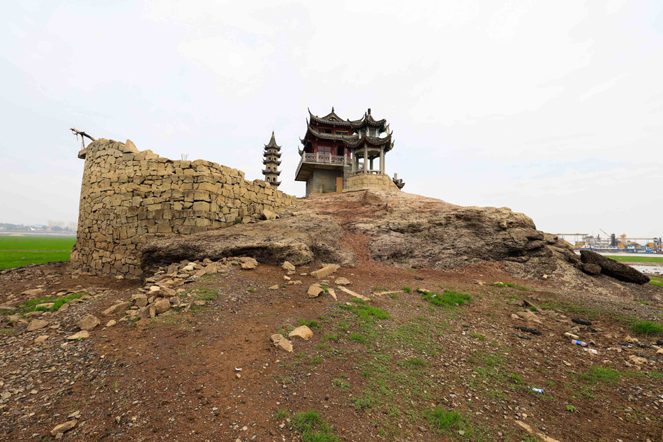 2016年10月7日,随着江西省的汛期结束,从7月中下旬开始,我国最大的淡水湖鄱阳湖的水位迅速下降,比往年提前近两个月进入枯水期。湖底不少草洲纷纷露出水面。和草洲一起重现天日的,还有一座鄱阳湖中有着千年历史的石岛——落星墩。