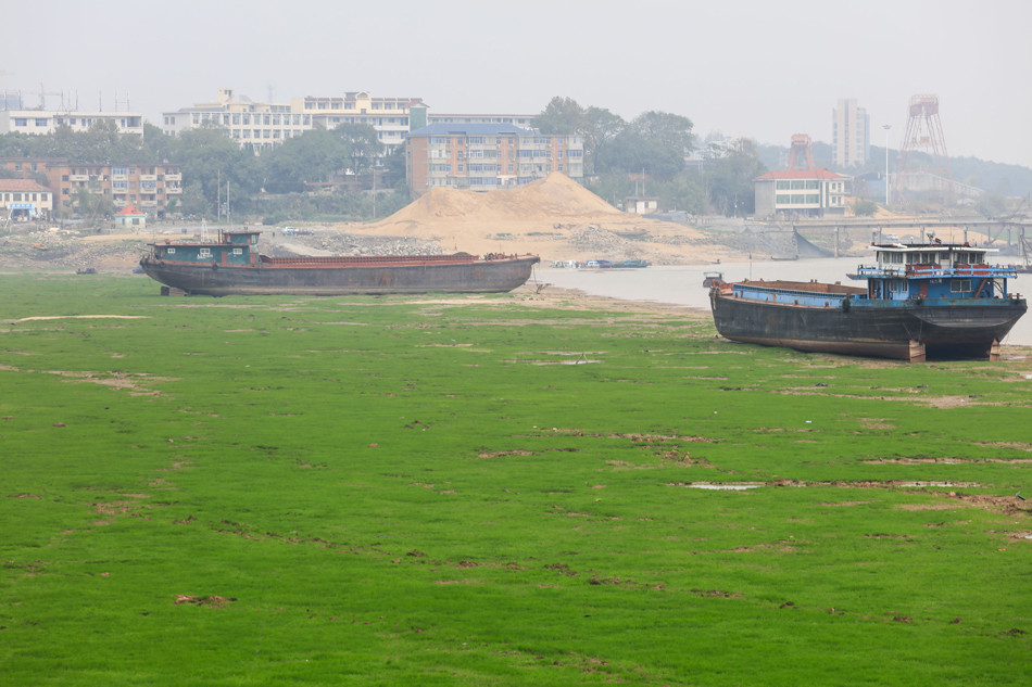 两艘大货轮搁浅在湖底上。 视觉中国图